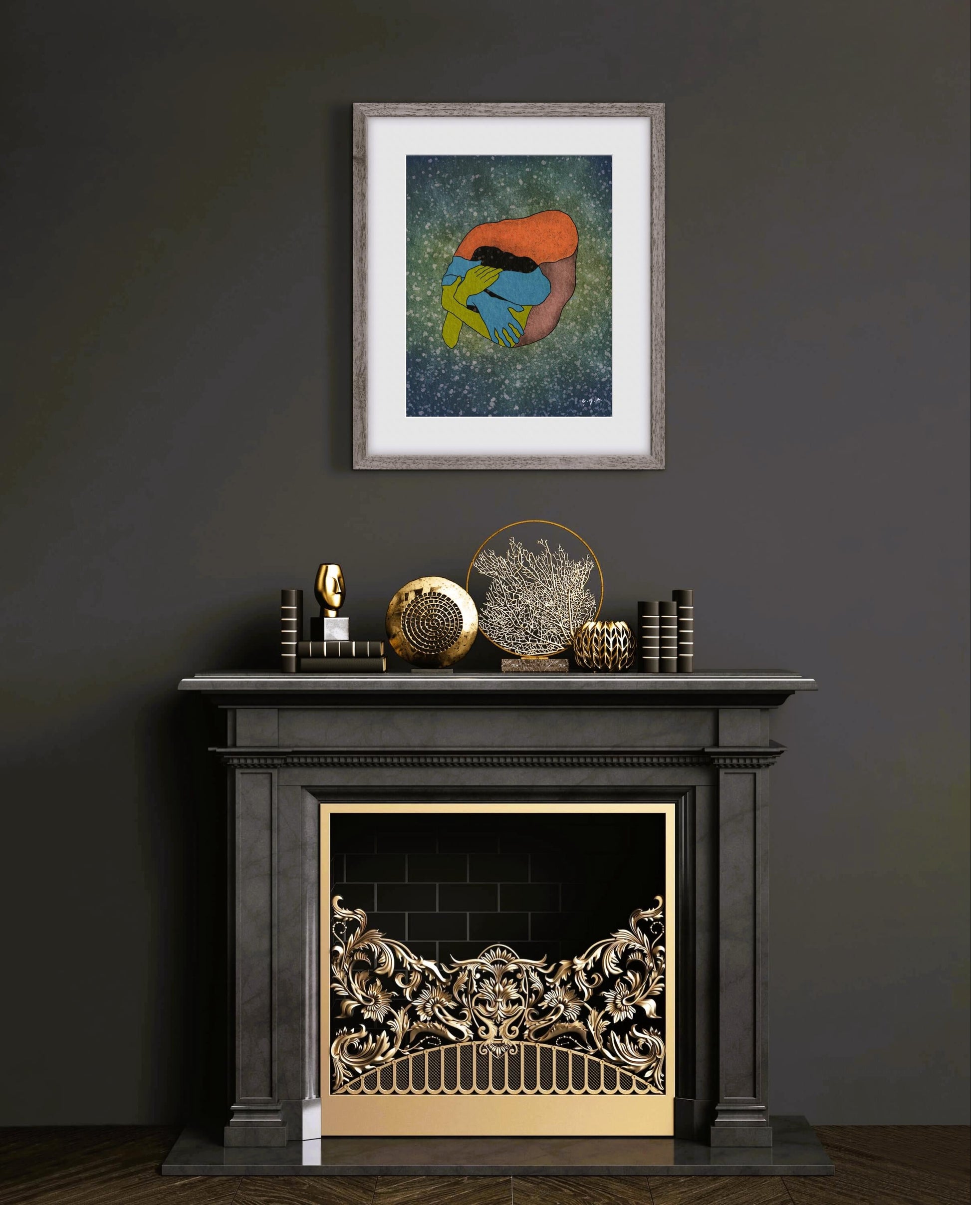 Abstract Love Art Print, Embracing Couple Illustration, Intimacy and Connection, Emotional Wall Art