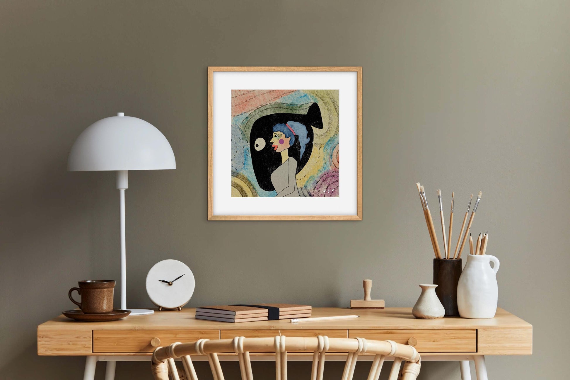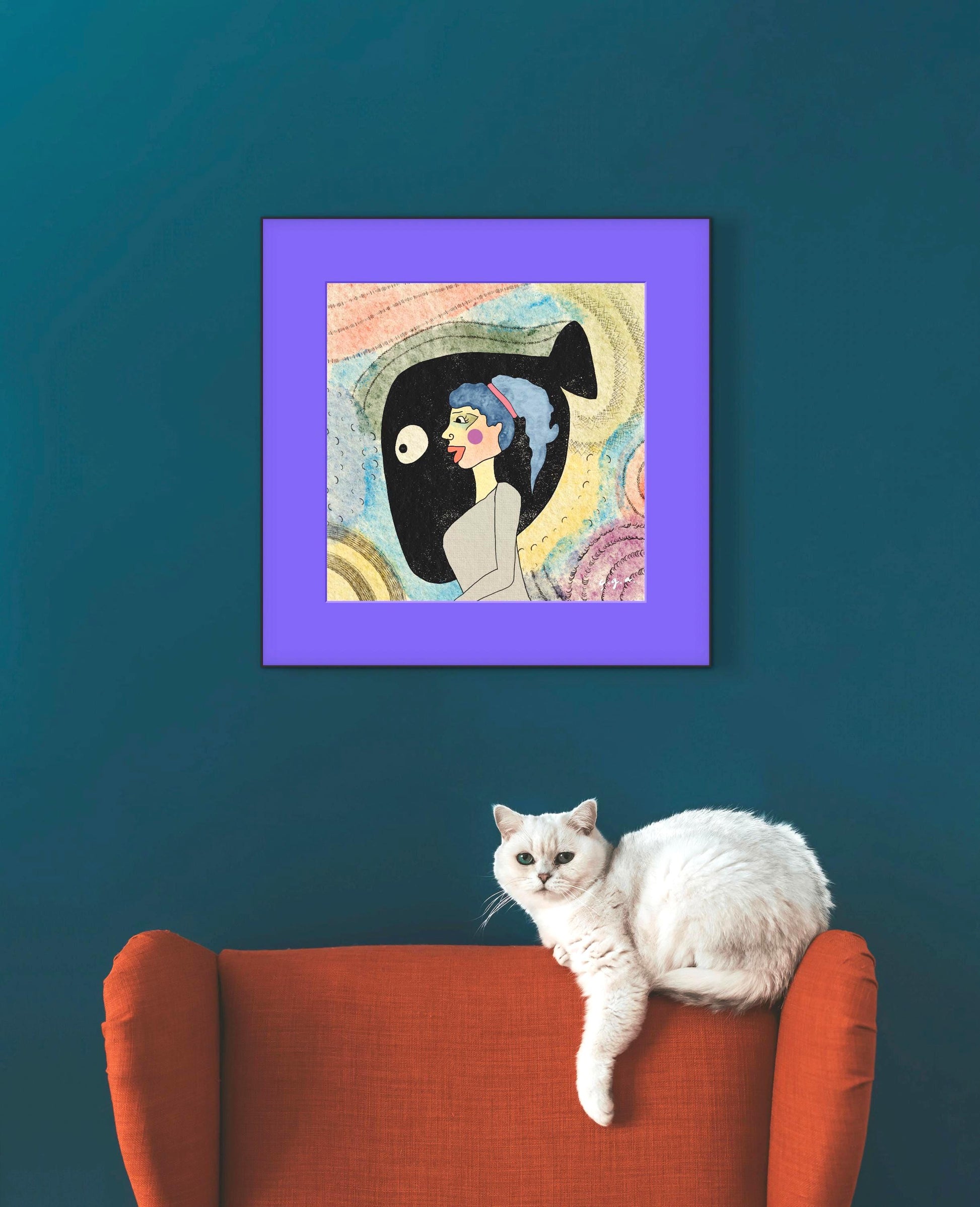 Hello there! Most of us are chronic overthinkers, aren’t we? My illustration is for us — it tells the story of deep thinkers whose minds never stop spinning. The dark fish resting above the head represents the weight of overthinking, while the vivid background reflects how colorful and creative such minds truly are. If you’re an overthinker yourself, hang this illustration as a gentle reminder of you. And whenever your thoughts start to spiral, try to let the black fish swim away. Also, it can be a perfect gift for anyone who relates to overthinking...