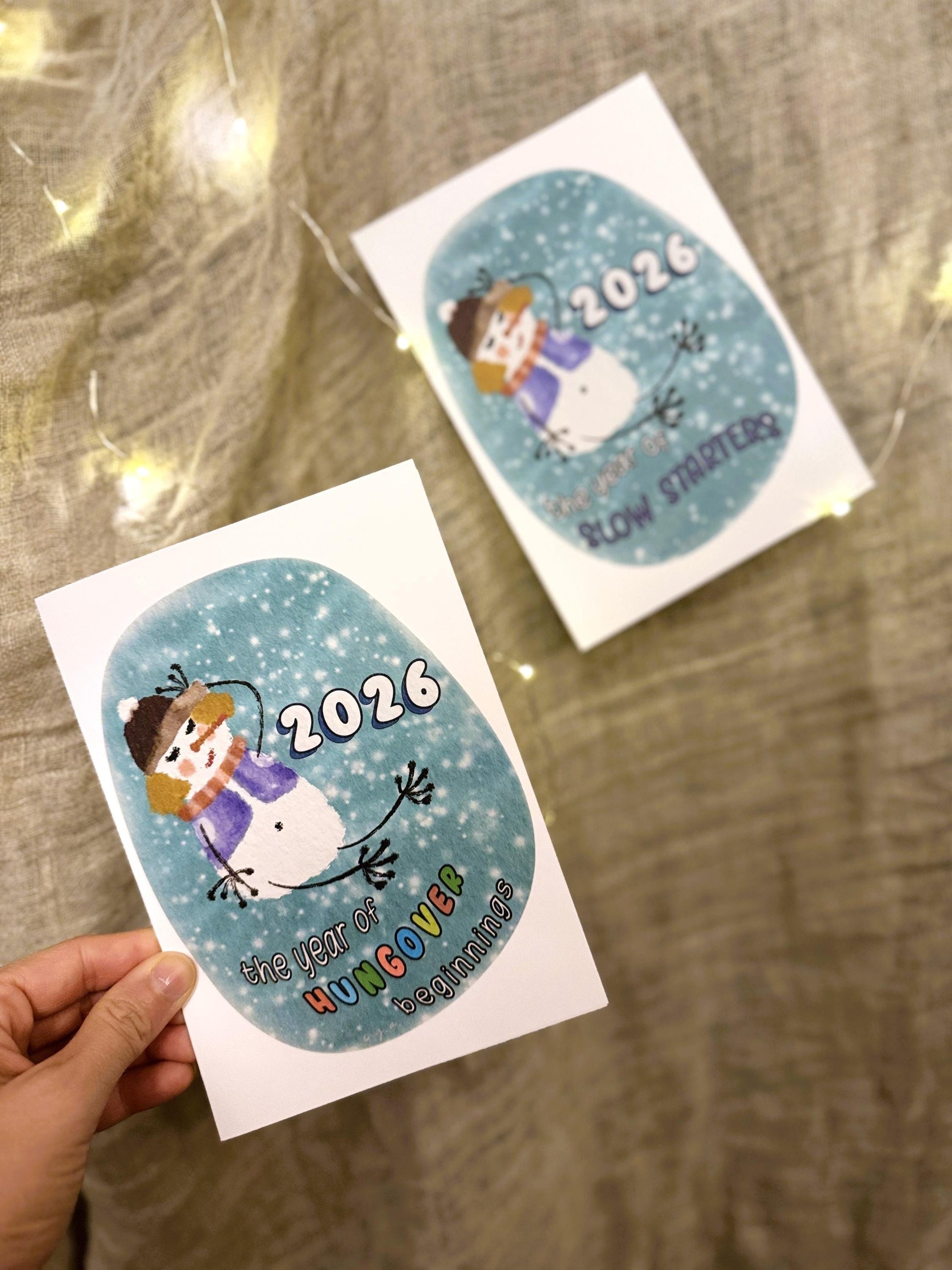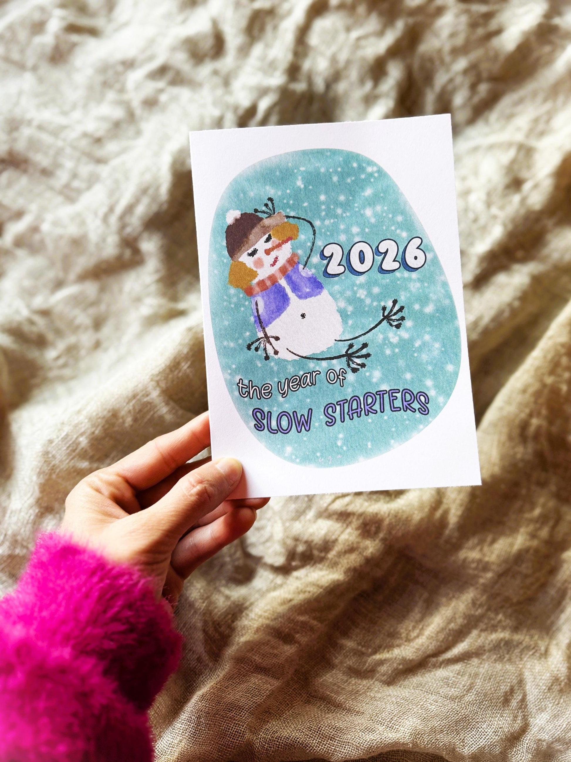 This funny Christmas and New Year card features my original snowgirl illustration — a perfectly imperfect snowwoman who reminds us that not every new year starts with high energy… and that’s totally okay! Each card is printed from my own watercolour-style drawing and offers customisation options. I wish you a year where you love who you are♥
