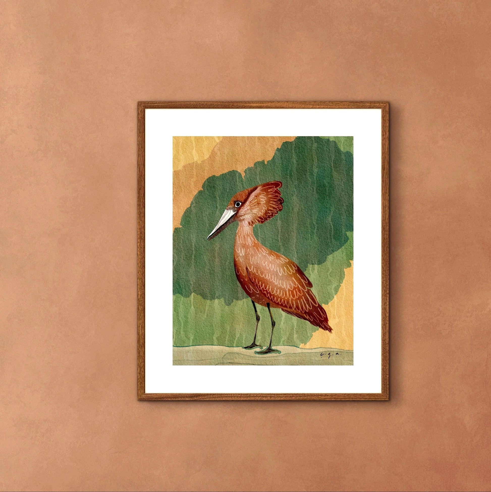 Hamerkop Bird Painting, African Waterbird Art, Nature Wall Decor, Wildlife Illustration, Scopus umbretta